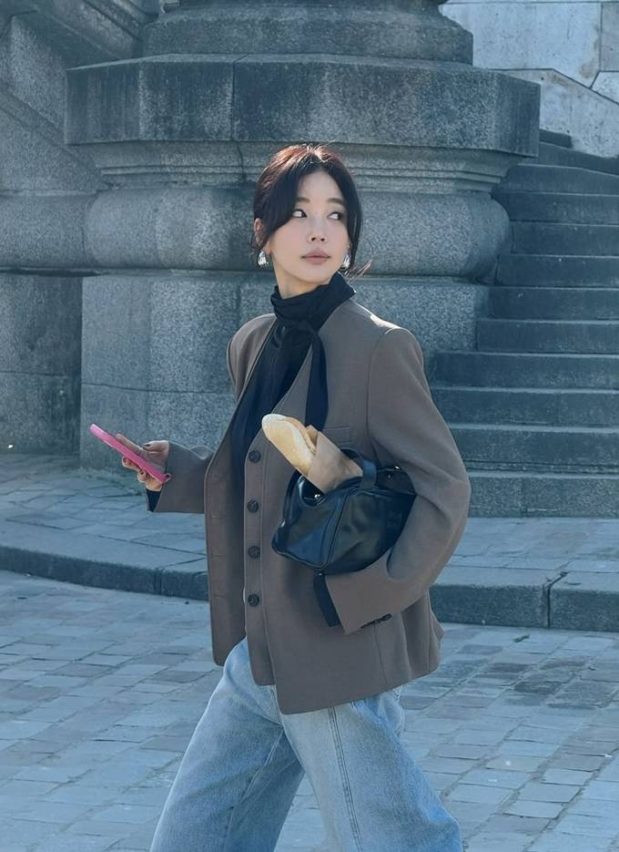 4. 4. 고윤정, 노칼라 재킷과 데님 팬츠! 설레는 패션위크 청순 여친룩 파리 출국