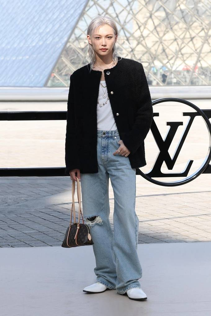 8. 그룹 스트레이키즈 필릭스는 파리 패션위크 2026 F/W 루이비통 컬렉션에서 블랙 트위드 재킷과 데님 팬츠를 매치한 클래식한 패션위크 룩으로 현지 팬들을 사로잡았다.