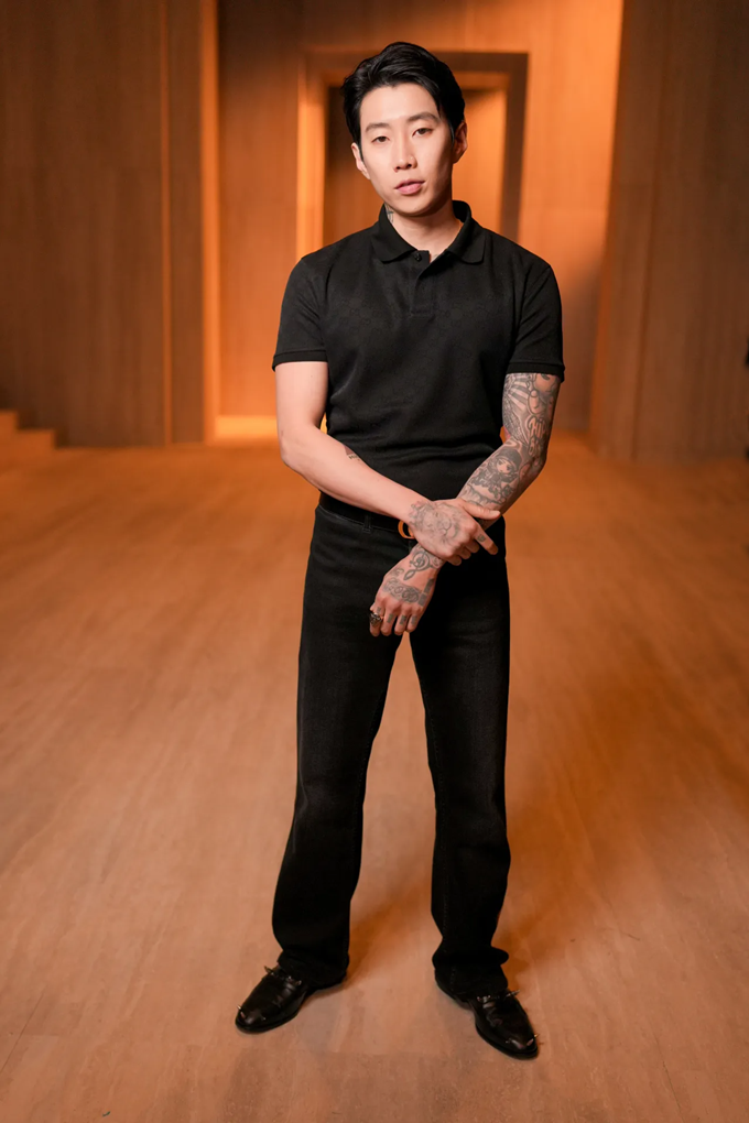 19. 가수 박재범은 밀라노 패션위크 2026 F/W 구찌 패션쇼에서 블랙 티셔츠와 팬츠를 매치한 올 블랙룩으로 카리스마를 발산했다.