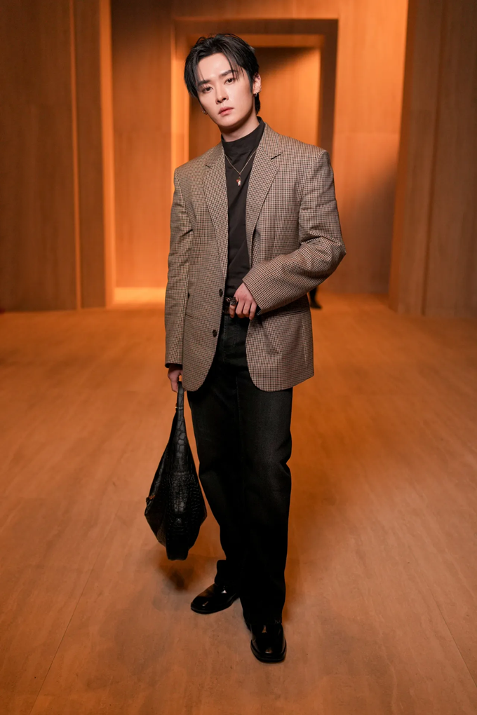 20. 그룹 스트레이키즈 리노는 밀라노 패션위크 2026 F/W 구찌 패션쇼에서 체크 재킷과 블랙 팬츠를 매치한 클래식한 슈트룩을 완성했다.