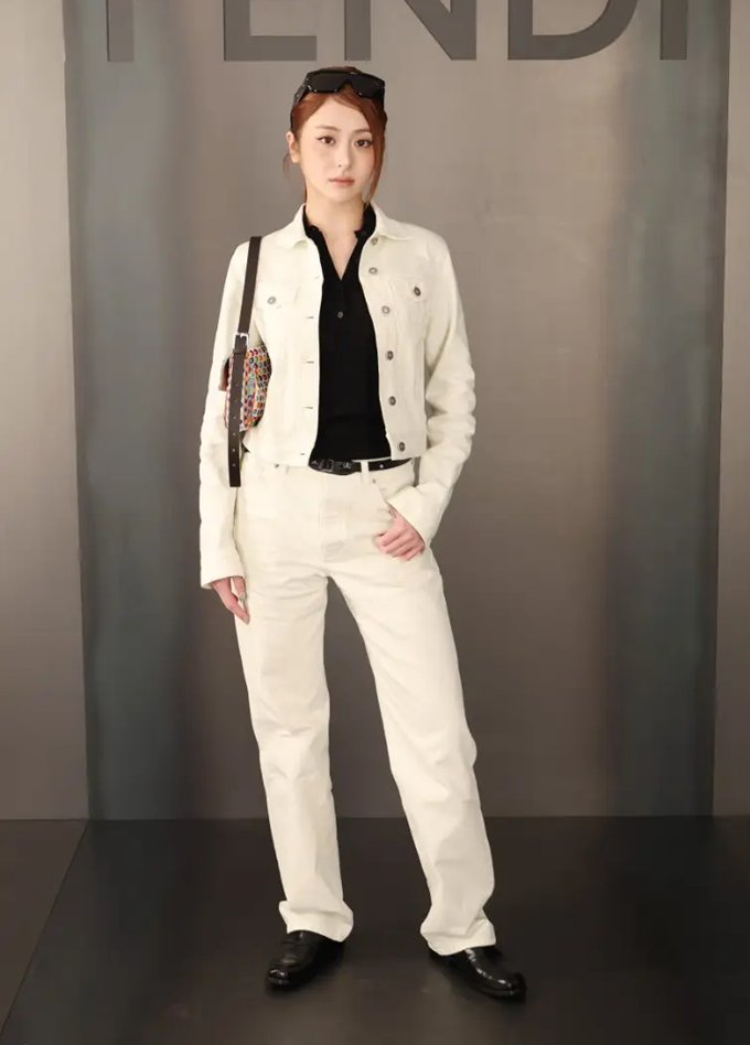 23. 걸그룹 르세라핌 (LE SSERAFIM) 허윤진은 밀라노 패션위크 2026 F/W 펜디 컬렉션에서 화이트 데님 셋업룩으로 존재감을 발산했다.