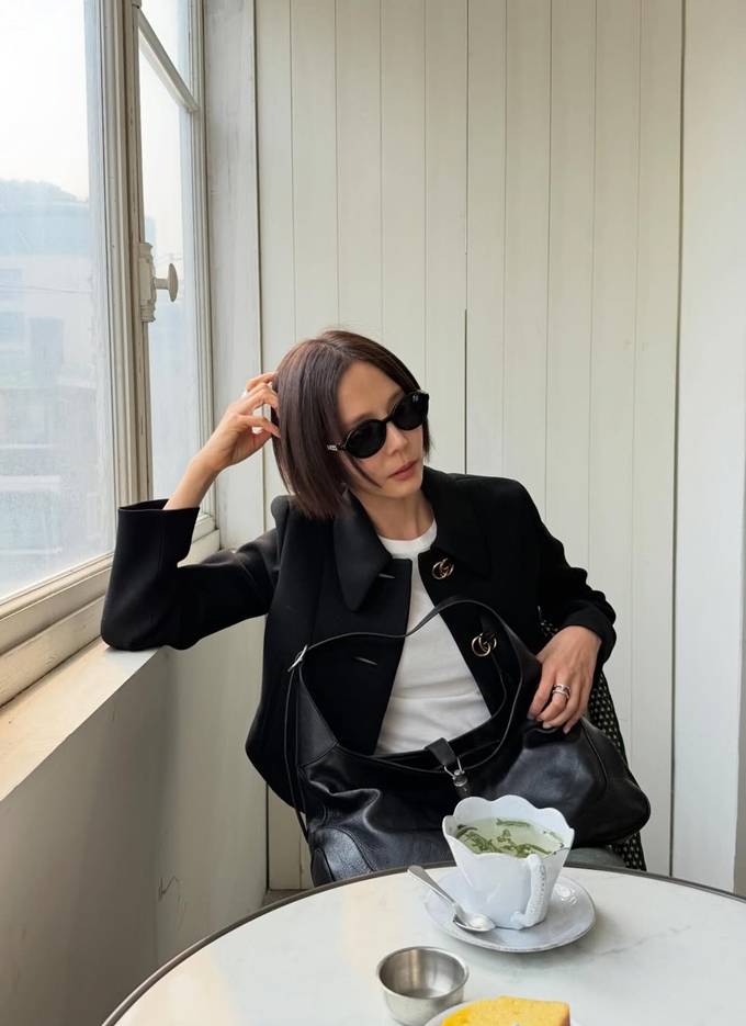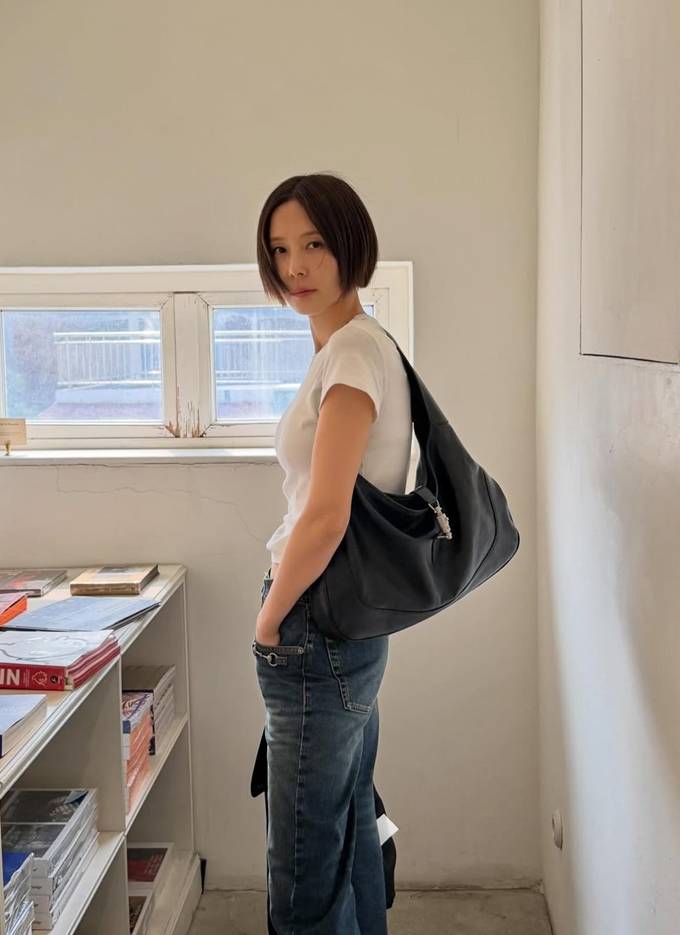 공개한 사진에서 김나영은 화이트 반팔 티셔츠에 금빛 버튼이 눈에 띄는 블랙 크롭 재킷을 입고 와이드 핏 데님 팬츠를 매치한 데일리룩으로 하체가 더 길어 보이는 스타일을 선보였다.