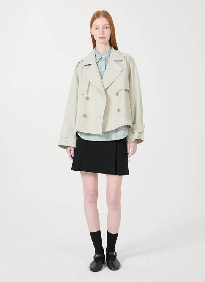 '쉬즈미스' 하프 트렌치 코트는 탄탄한 코튼 100소재의 클래식한 더블 브레스티드 스타일로 단정한 테일러드 칼라와 미니멀한 디자인으로 클래식한 분위기를 강조했다.