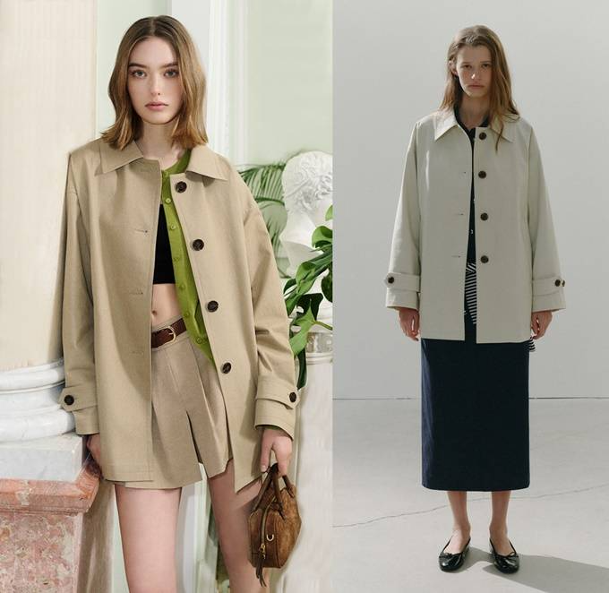 지난 겨울 발마칸 코트 열풍이 발마칸 트렌치 코트로 이어지고 있다.