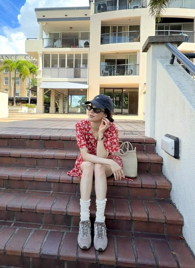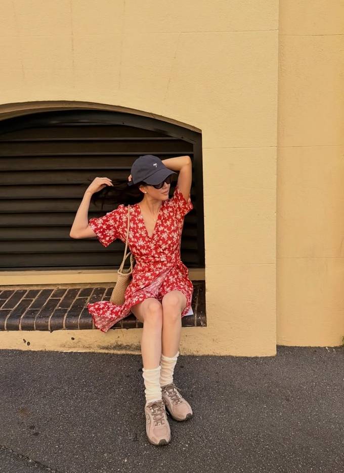 공개한 사진에서 정려원은 레드 플라워 패턴의 미니 원피스에 캡 모자와 스니커즈를 매치해 경쾌한 섬머룩을 완성했다. 여기에 니삭스 디테일을 더해 발랄한 무드를 살렸다.