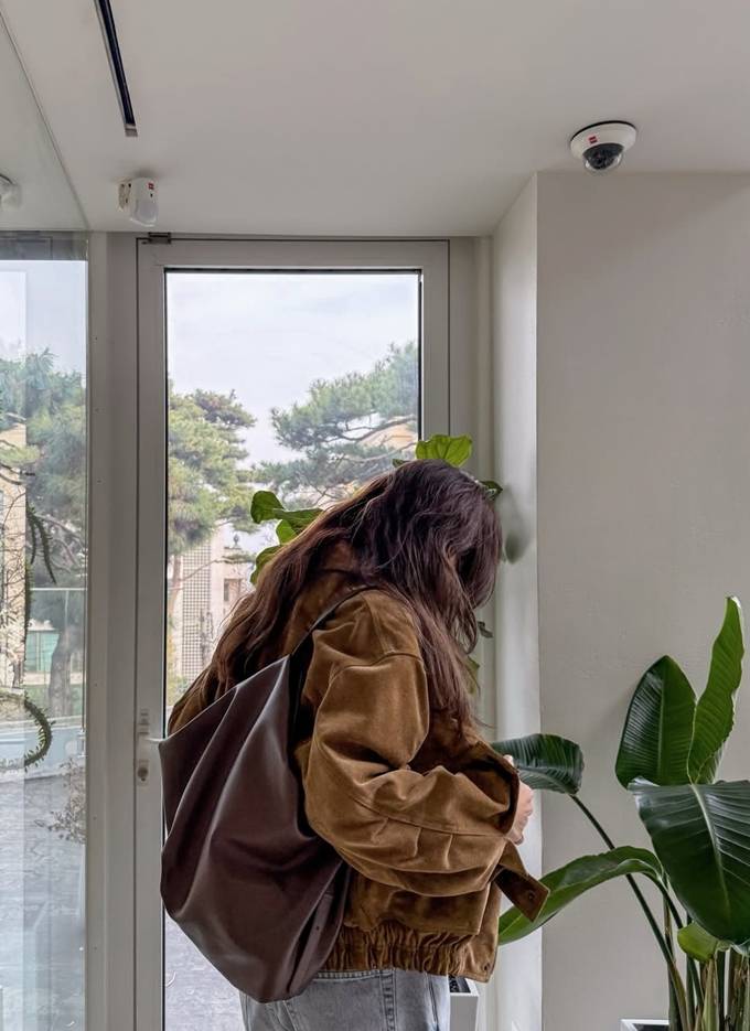 여기에 부드러운 브라운 톤의 빅 백을 더해 실용성과 스타일을 동시에 잡았다.