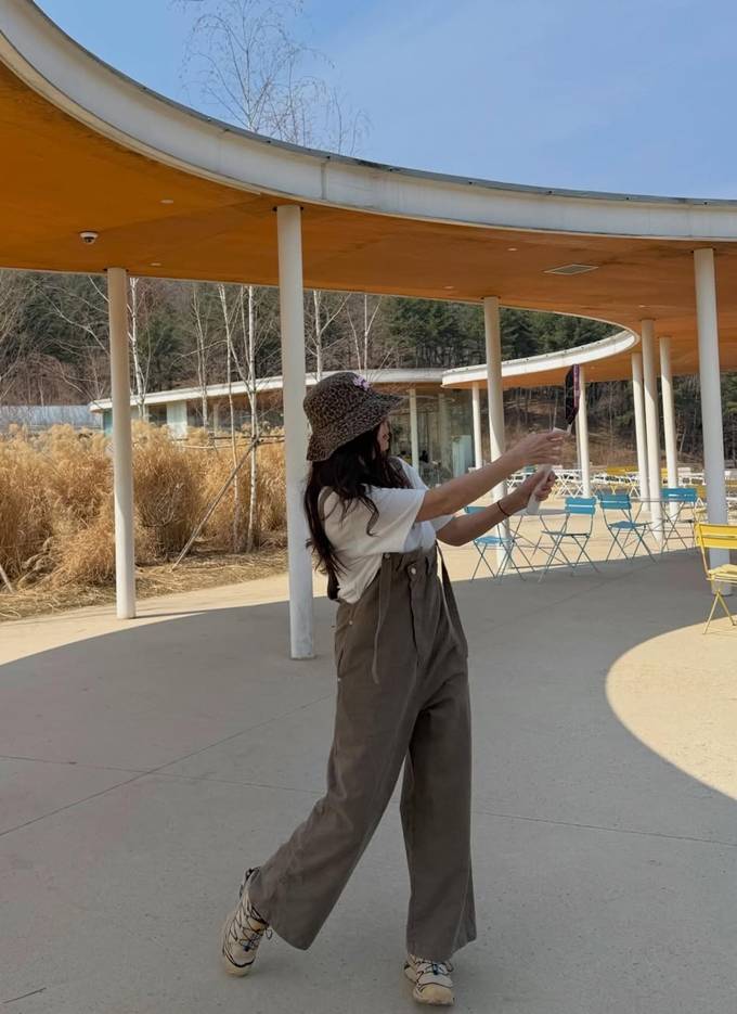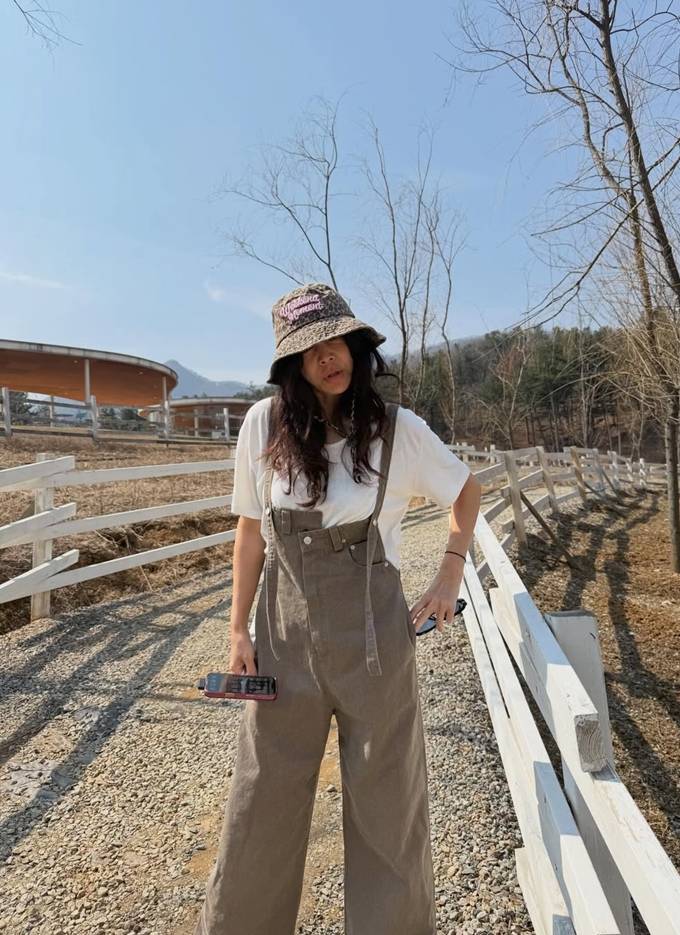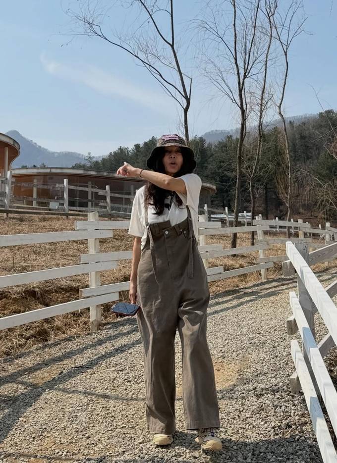 황신혜, 앞서가는 60대 패셔니스타! 가평에 봄이 일찍 반팔에 멜빵 가벼워진 봄 나들이룩