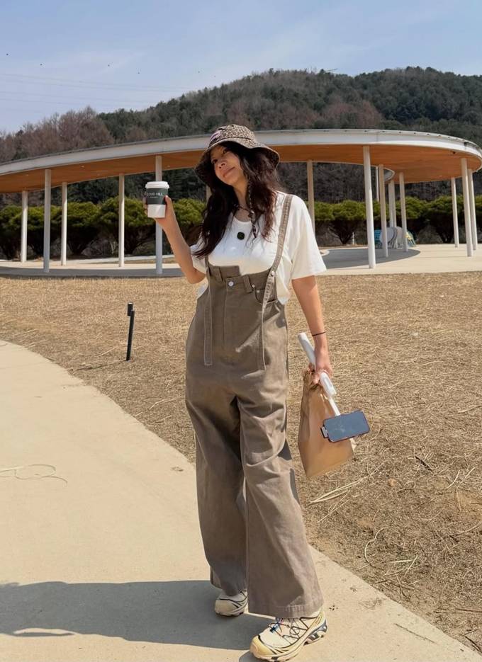 공개한 사진에서 황신혜는 화이트 반팔 티셔츠에 멜빵 팬츠를 입고 버킷햇을 매치한 나들이룩으로 좀 이른 듯한 봄 외출 스타일을 선보였다.