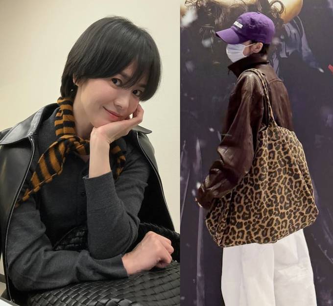 공개한 사진에서 송혜교는 짧은 숏컷 헤어 스타일에 블랙 레더 재킷과 브라운 컬러의 레더 재킷으로 캐주얼하면서도 스타일리시하게 멋낸 봄 패션을 선보였다.