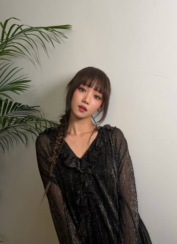 특히 프릴 디테일이 더해진 브이넥 라인은 여성스러운 실루엣을 극대화하며, 여리여리한 무드를 한층 끌어올렸다.