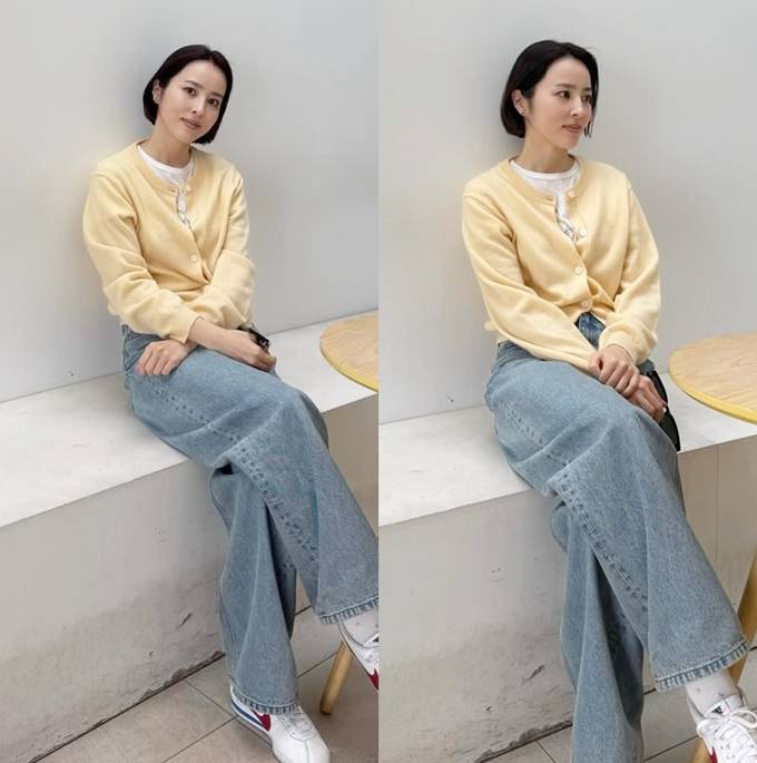 공개한 사진에서 한혜진은 짧은 단발 헤어 스타일에 옐로 니트 카디건에 화이트 이너를 입고 와이드 핏 데님 팬츠를 매치한 여행룩으로 최강 동안 미모를 드러냈다.