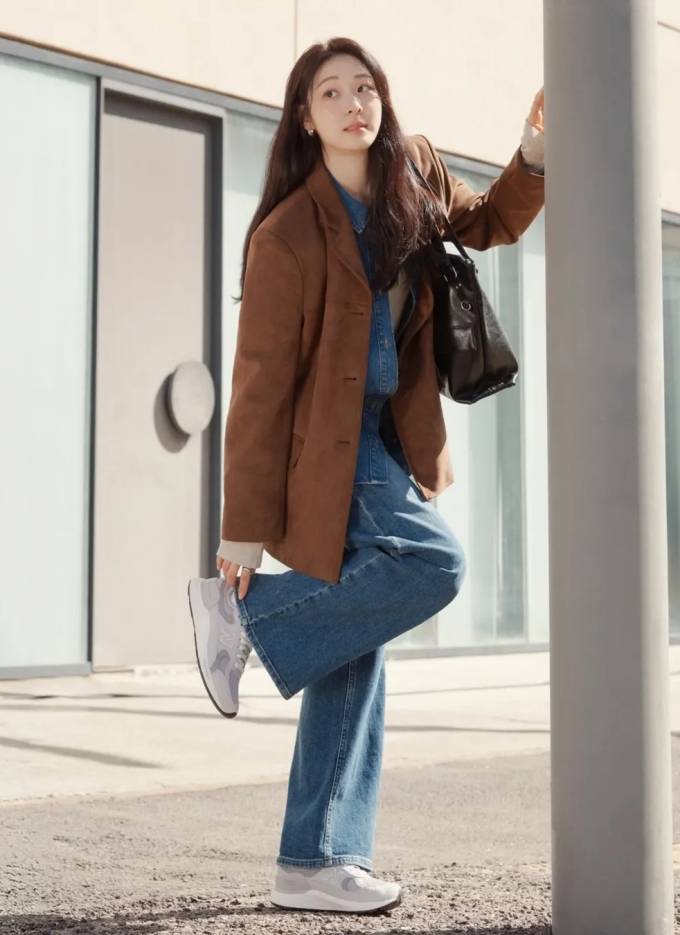 또 청청패션에 브라운 재킷을 걸친 댄디한 스타일로 내추럴한 분위기를 자아냈다.