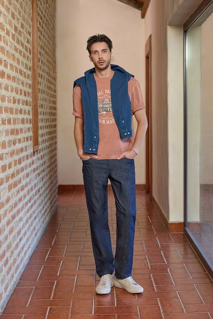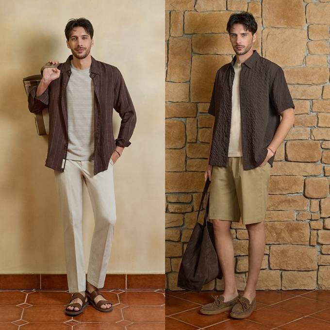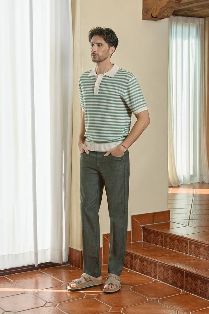 스트라이프•투톤 조직의 텍스처드 스웨터, 린넨 100%부터 레이온 혼방까지 다양하게 구성되어 초여름까지 편하게 입을 수 있는 셔츠, 기능성 소재의 반팔 피케 티셔츠 등 경량 아이템이 주력이다.
