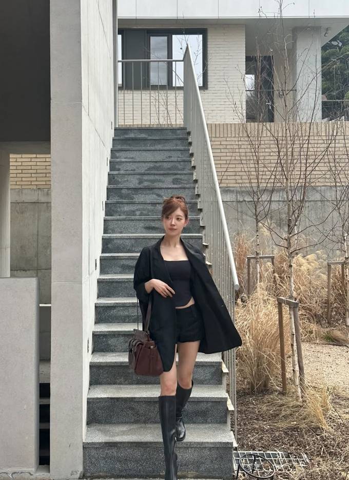 특히 블랙 재킷과 슬림한 이너, 쇼츠를 매치한 올 블랙 스타일링은 군더더기 없는 실루엣을 만들어 시각적으로 더욱 날씬해 보이는 효과를 줬다.