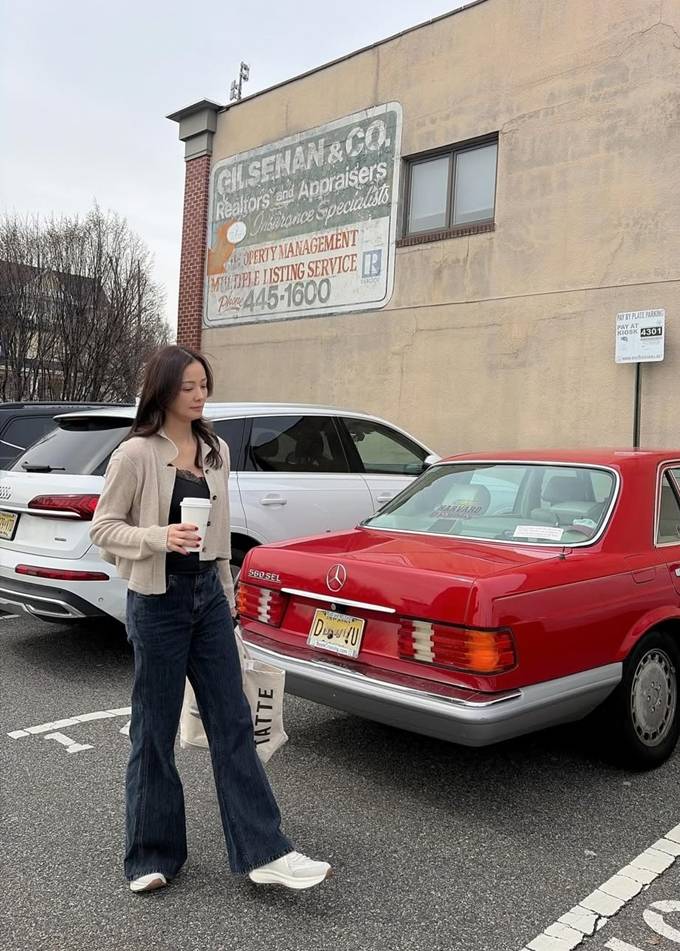 손태영, 뉴욕댁의 외출 카디건을 짧게! 더 슬림해 보이는 크롭 니트 카디건 데일리룩