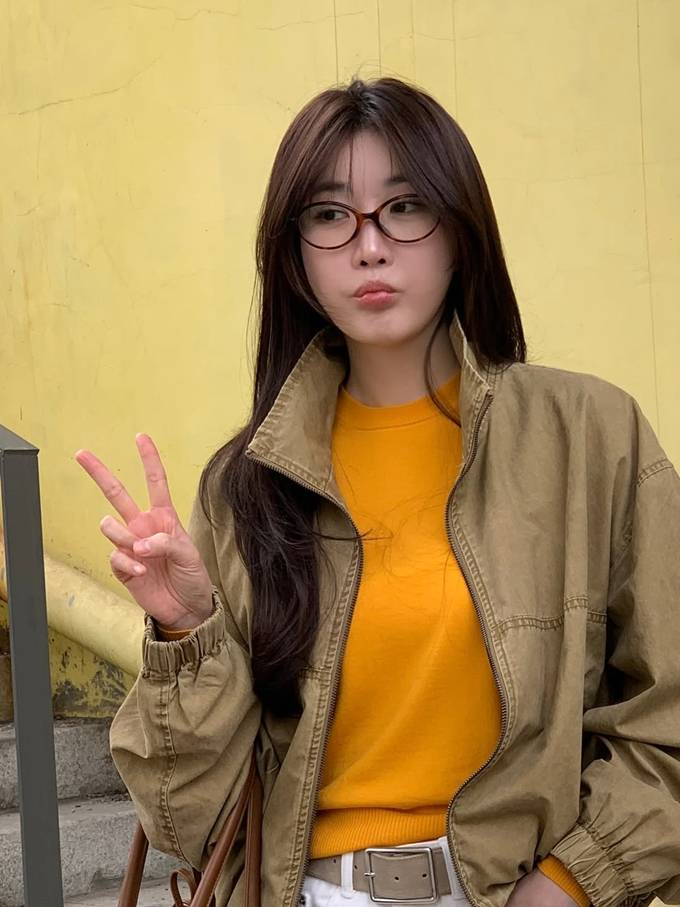 1. 1.이해리, 봄 꽃놀이와 찰떡! 옐로&브라운 티셔츠와 봄버 재킷 톤온톤 나들이룩