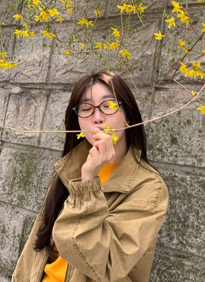공개한 사진에서 이해리는 옐로 티셔츠에 브라운 컬러의 봄머 재킷을 걸친 톤온톤 스타일로 개나리와 찰떡 궁합을 과시한 나들이룩을 선보였다.