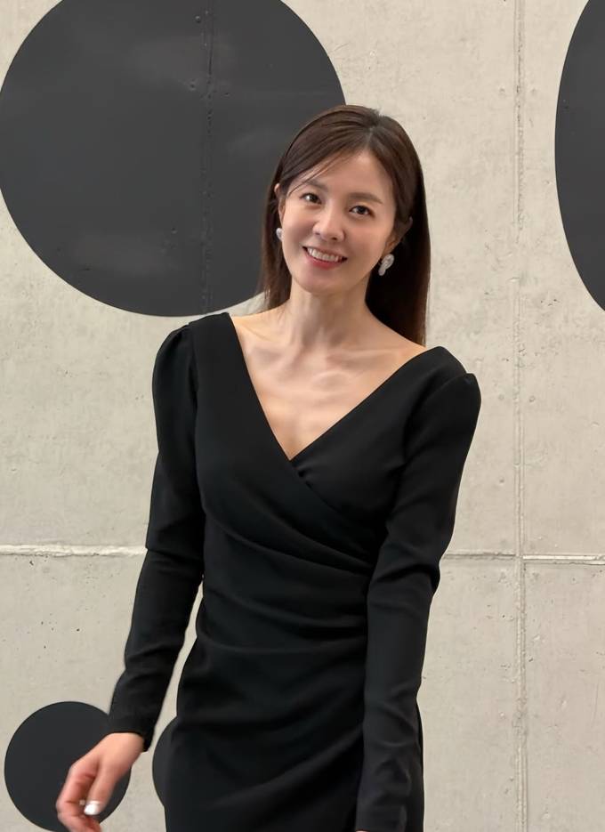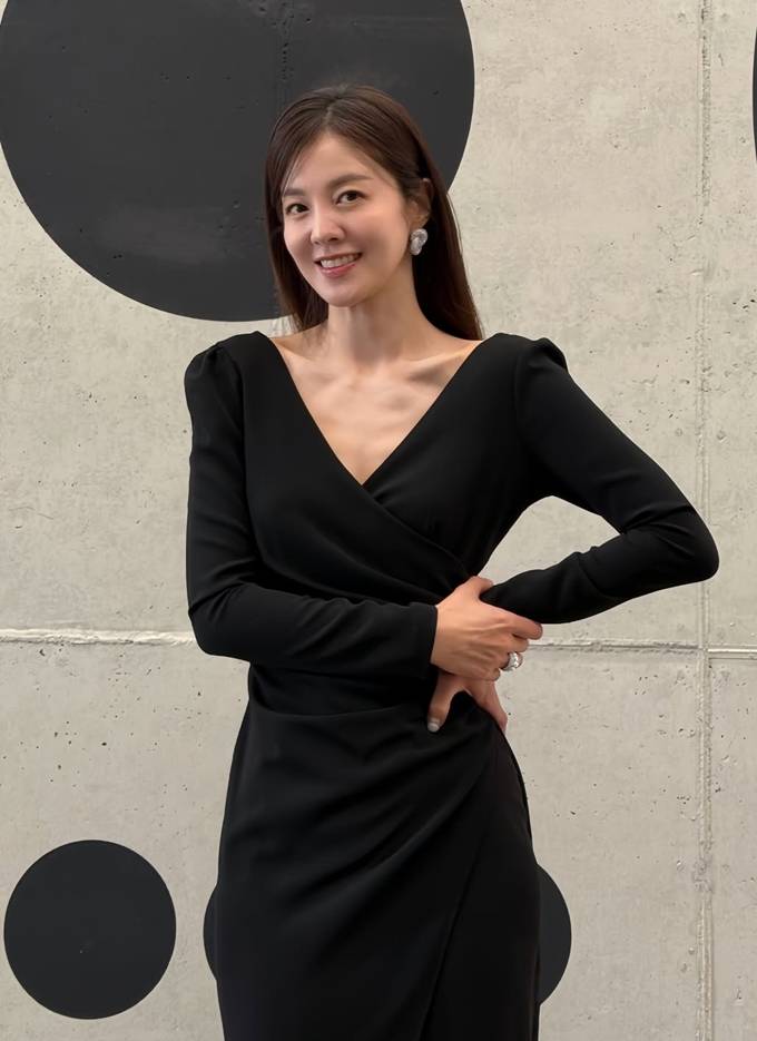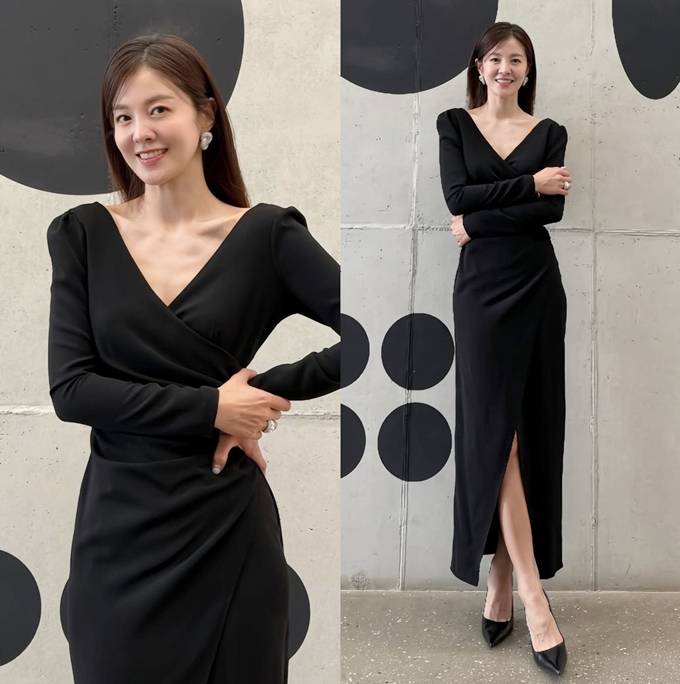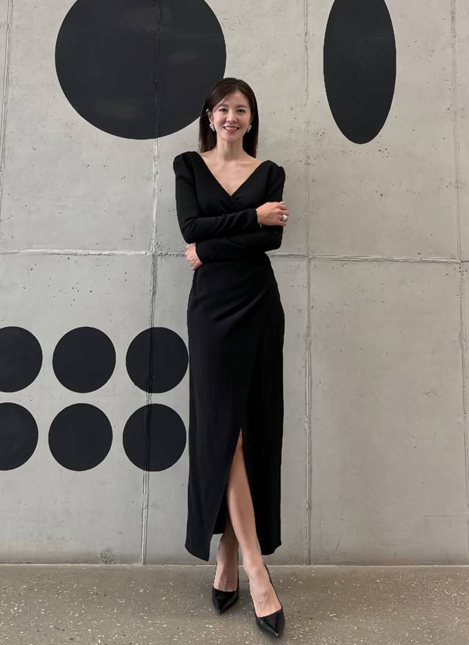 배우 김성은이 블랙 드레이프 드레스룩으로 40대의 멋과 품격을 드러냈다.