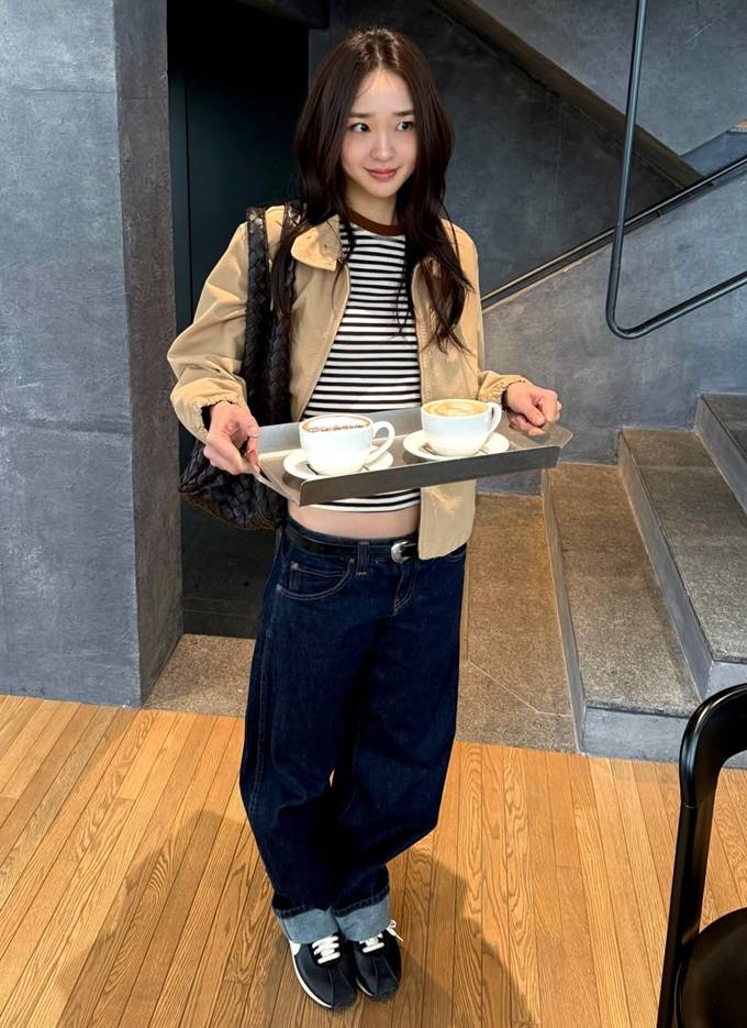 공개한 사진에서 손연재는 바지는 통이 넓고 기장이 긴 데님 팬츠를 롤업하고 재킷은 기장이 짧은 크롭 하이넥 집업 스타일을 매치해 스타일리시한 봄 외출 스타일을 완성했다.