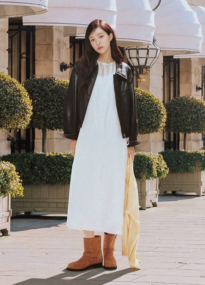 손나은처럼 청바지와 레이어드하거나 봄 가을 가죽 재킷을 살짝 걸친 스타일링으로 강약을 조절했다.