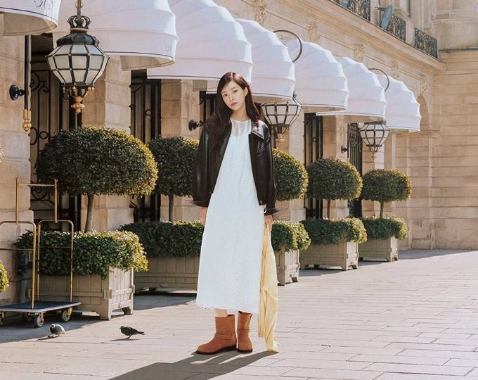 ↑사진 = 손나은이 착용한 'JJ지고트' 스웨이드 재킷