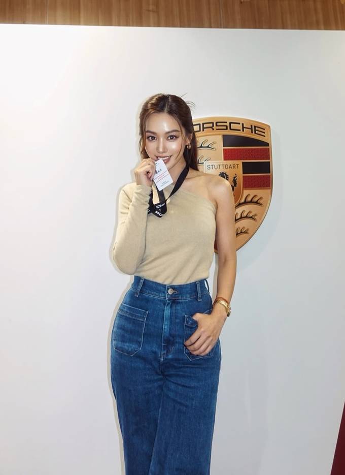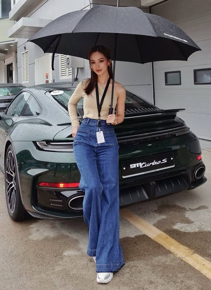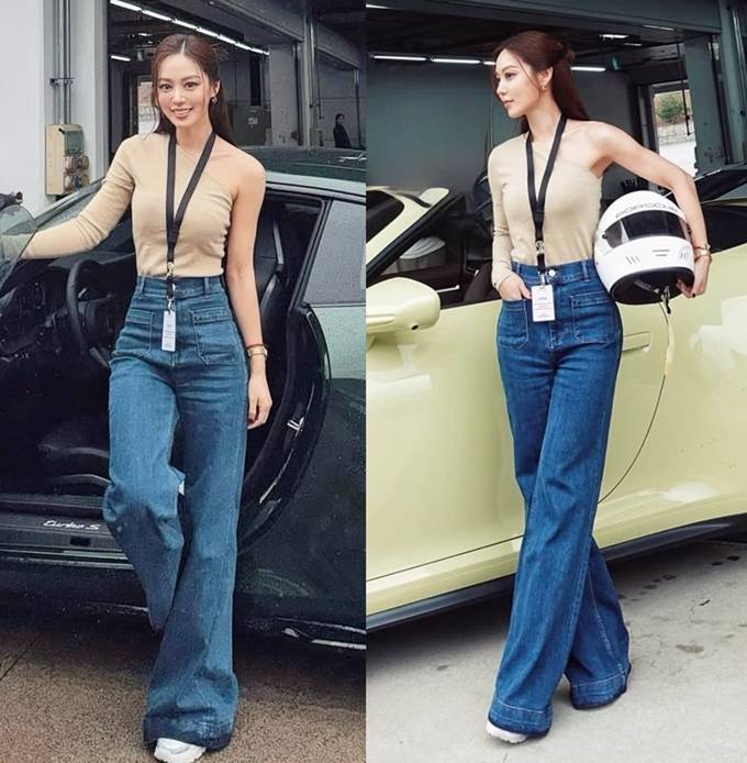 배우 김희정이 인제 스피디움에서 와이드 하이웨이스트 레이싱룩으로 더 길어 보이는 기럭지를 뽐냈다.