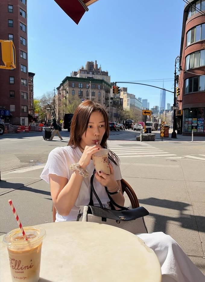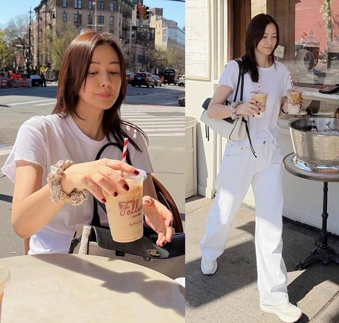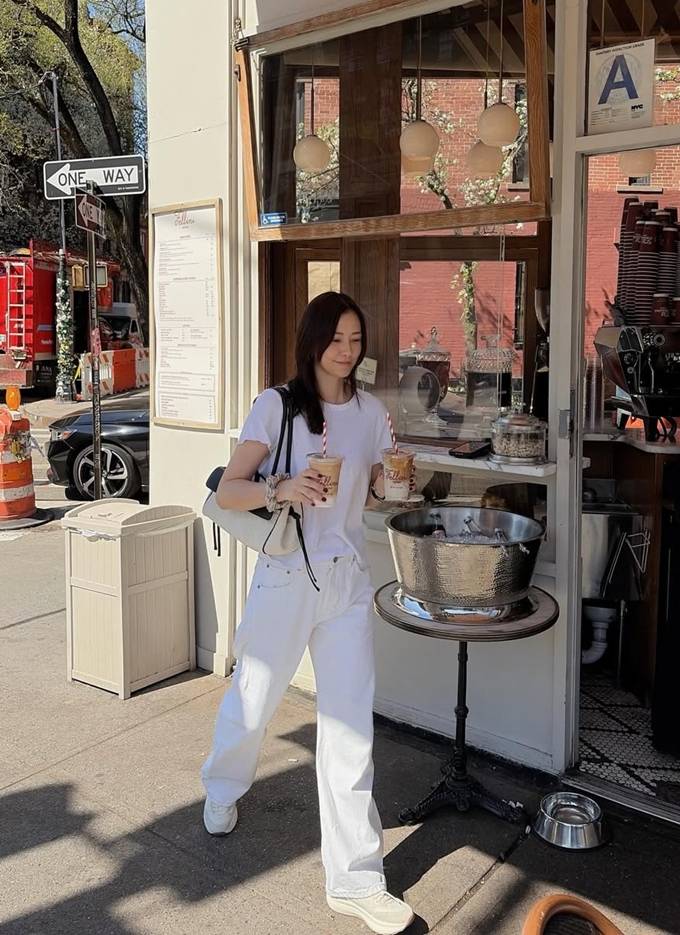 손태영, 뉴욕 벌써 한여름! 달랑 반팔 하나로 끝 화이트 티셔츠 외출 데일리룩