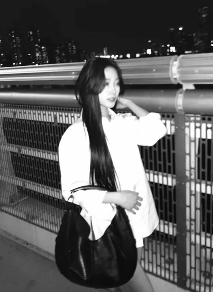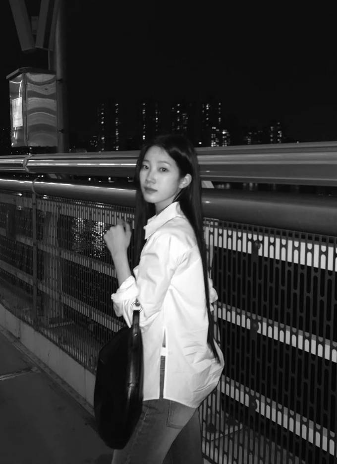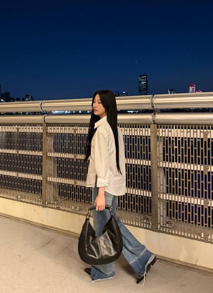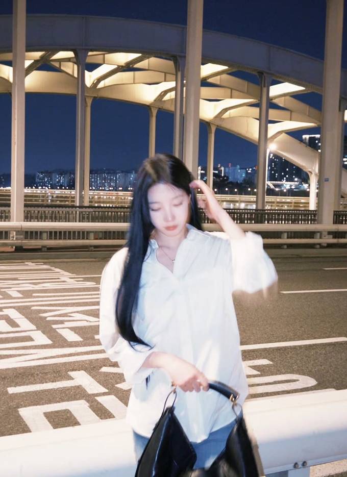 르세라핌 카즈하, 셔츠 하나로 완성한 청순 요정미! 롤업 화이트 셔츠 미니멀 밤 산책룩