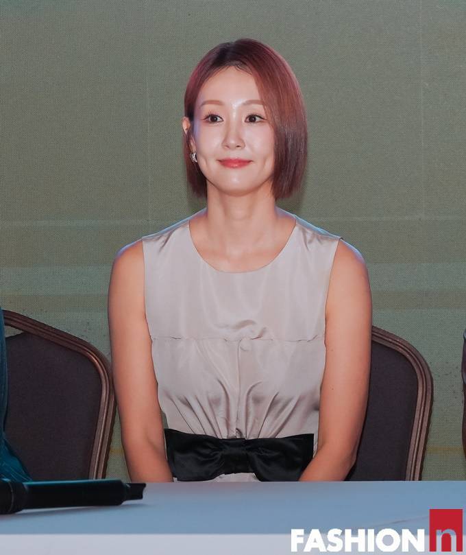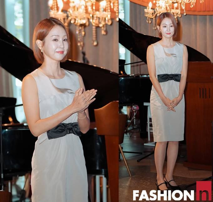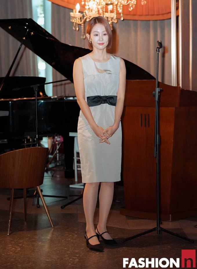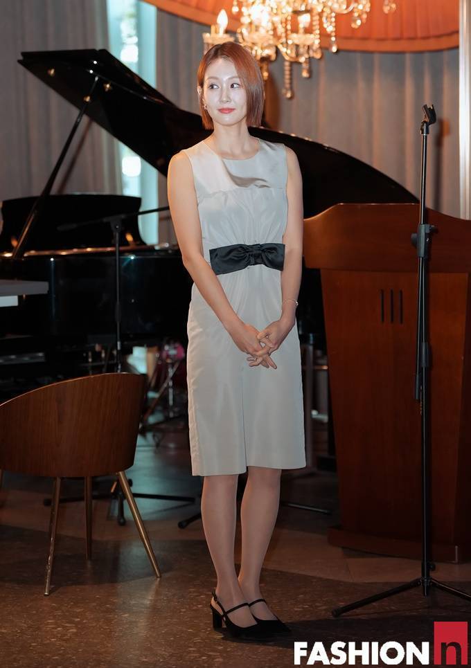 홍보대사에 위촉된 오정연은 이날 허리라인의 리본 벨티드 디테일이 포인트인 슬리브리스 원피스룩으로 동안 미모와 각선미를 뽐냈다.