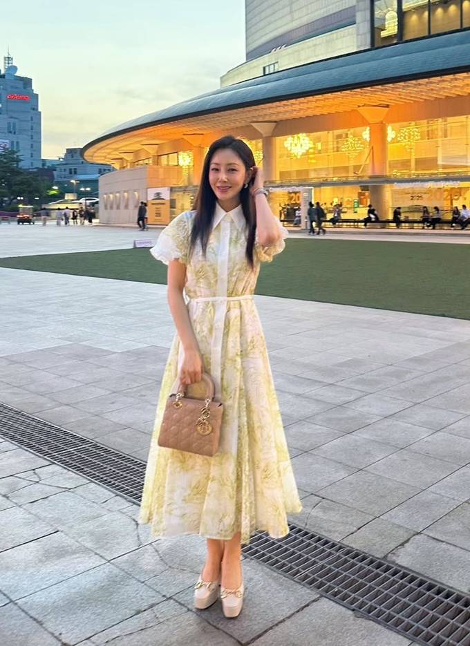 배우 오나라가 곱게 차려 입은 노란 꽃무늬 원피스 나들이룩으로 하늘하늘 여린 실루엣을 뽐냈다.