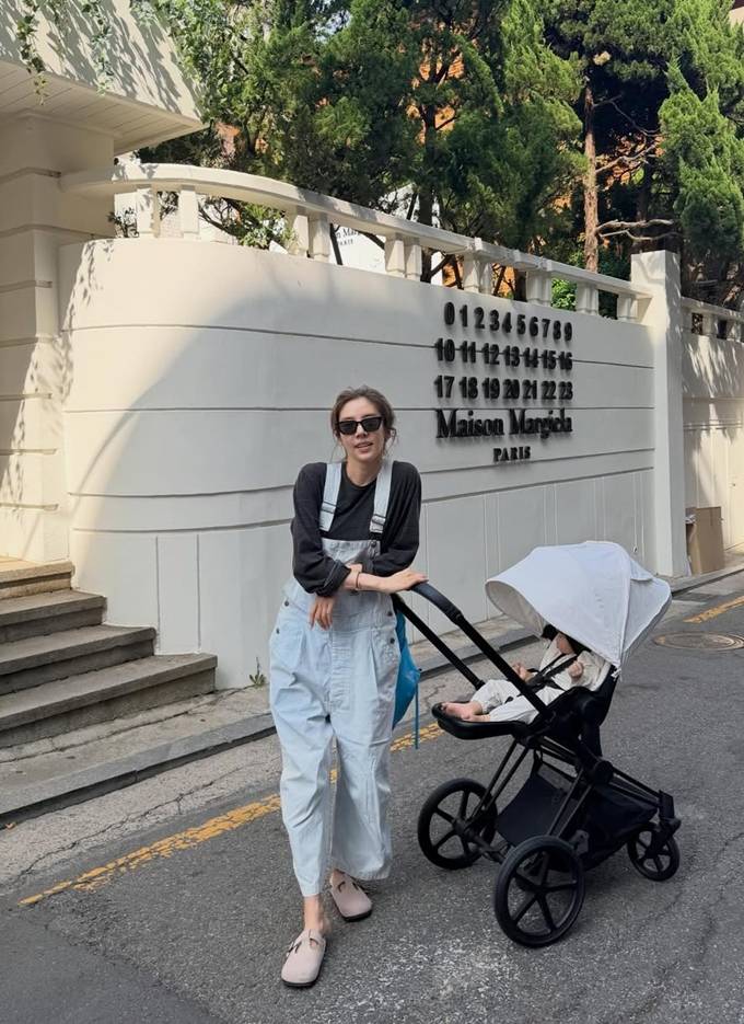 손담비, 쑥쑥 크고 있는 1살 딸과 동네 산책! 루즈 핏 멜빵도 완벽 꾸안꾸 데일리룩