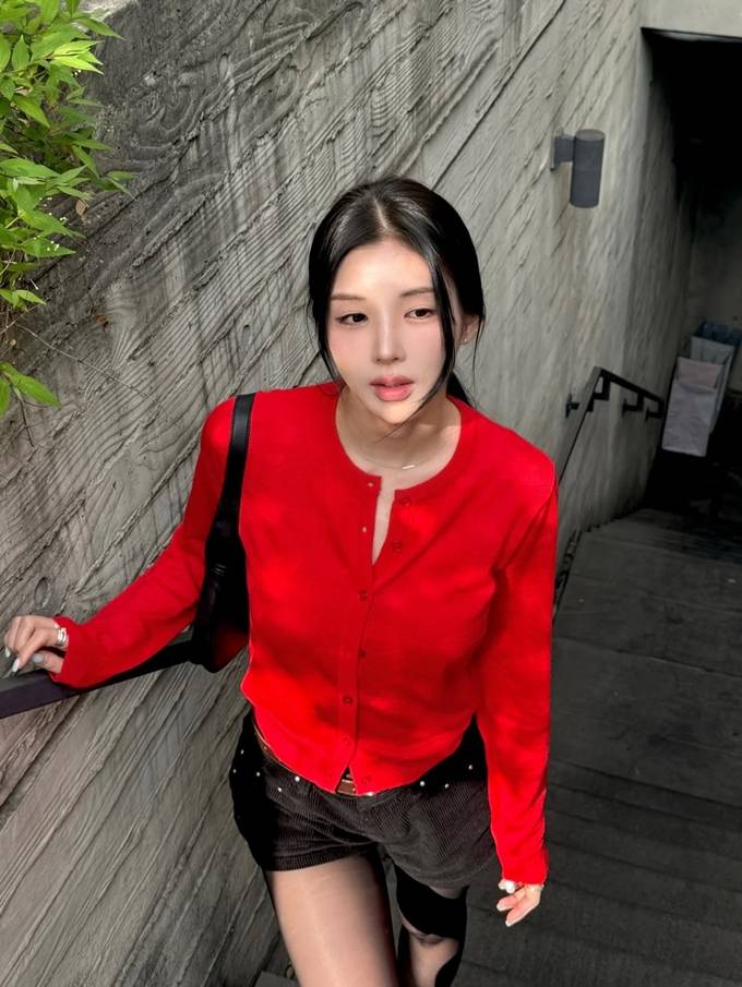 공개한 사진에서 강다은은 늘씬한 각선미의 블랙 쇼츠에 레드 컬러의 니트 카디건을 걸친 외출룩으로 여리여리한 슬림한 몸매를 드러냈다.