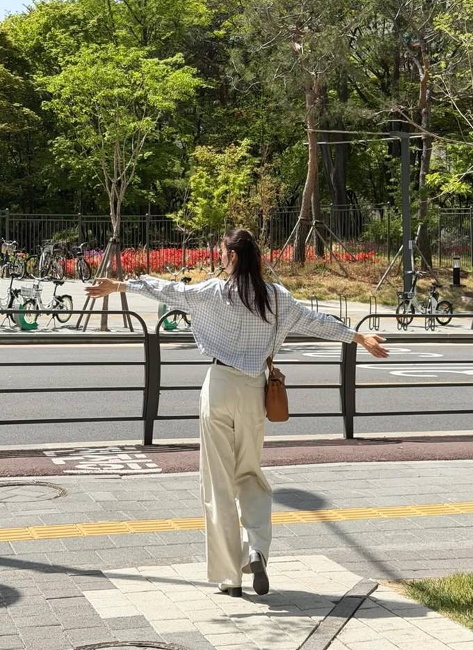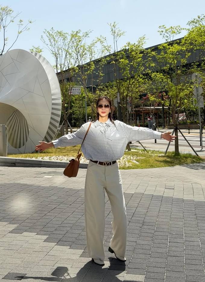 한다감은 20일 자신의 채널에 “햇살 아~주 좋았던 날! 광합성 작용 실컷 하니 컨디션 좋아지네요. 따뜻한 날씨에 뭐 입어볼까 하다가 블루체크셔츠 + 베이지색 바지로 코디해 봤어요”라는 글과 함께 외출 사진을 게재했다.