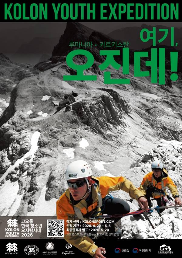 한편, 이번 프로젝트는 (사)대한산악연맹이 주최하고 코오롱스포츠, 산림청, 한국산림복지진흥원, 복권위원회가 후원한다. 자세한 모집 요강은 코오롱스포츠 공식 온라인 스토어에서 확인할 수 있다.