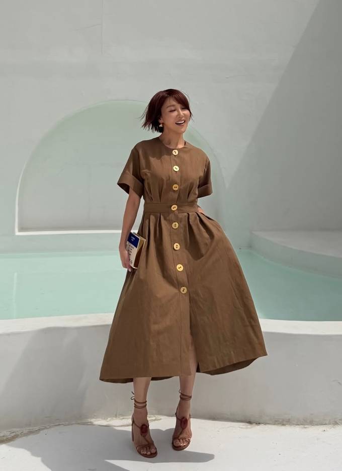 최은경 아나, 50대 교수 사모님의 여름 원피스 픽! 슬림 벨티드와 버튼 원피스룩