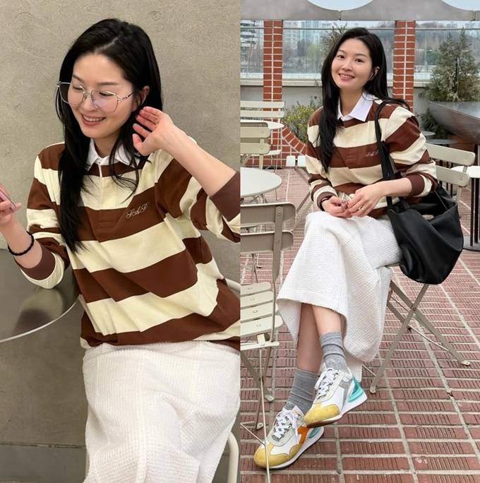 5. 5.류이서, 결혼 5년차! 승무원 시절 분위기 그대로 풋풋한 스트라이프 봄 프레피룩