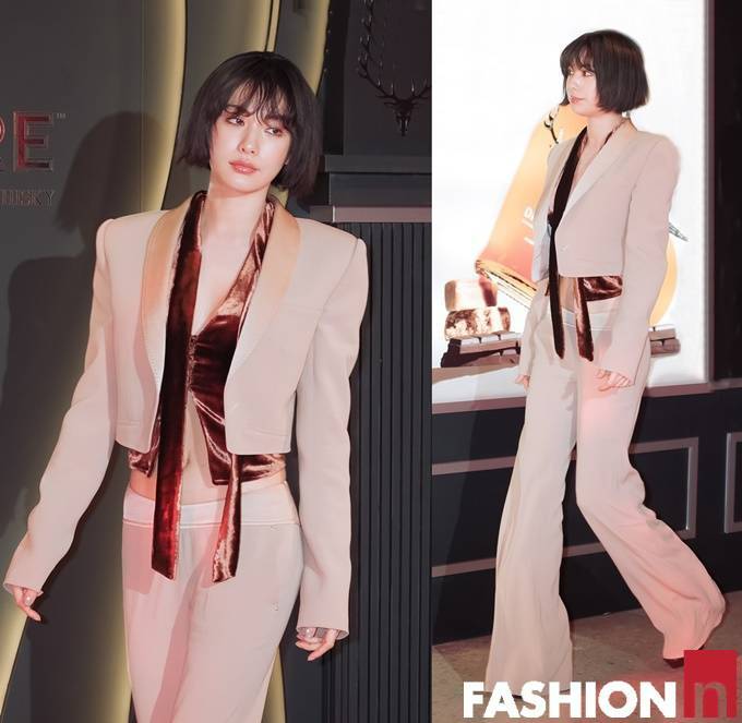 [패션엔 포토] 나나, 압도하는 9등신 비율! 매혹적인 턱시도 크롭 슈트룩