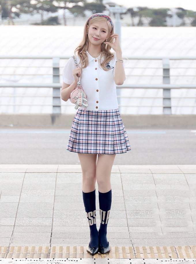 미연은 이날 폴로 카라 가디건과 화사한 체크 메쉬 소재의 골프 주름 스커트를 매치한 걸리스룩으로 발랄한 매력을 더했다.