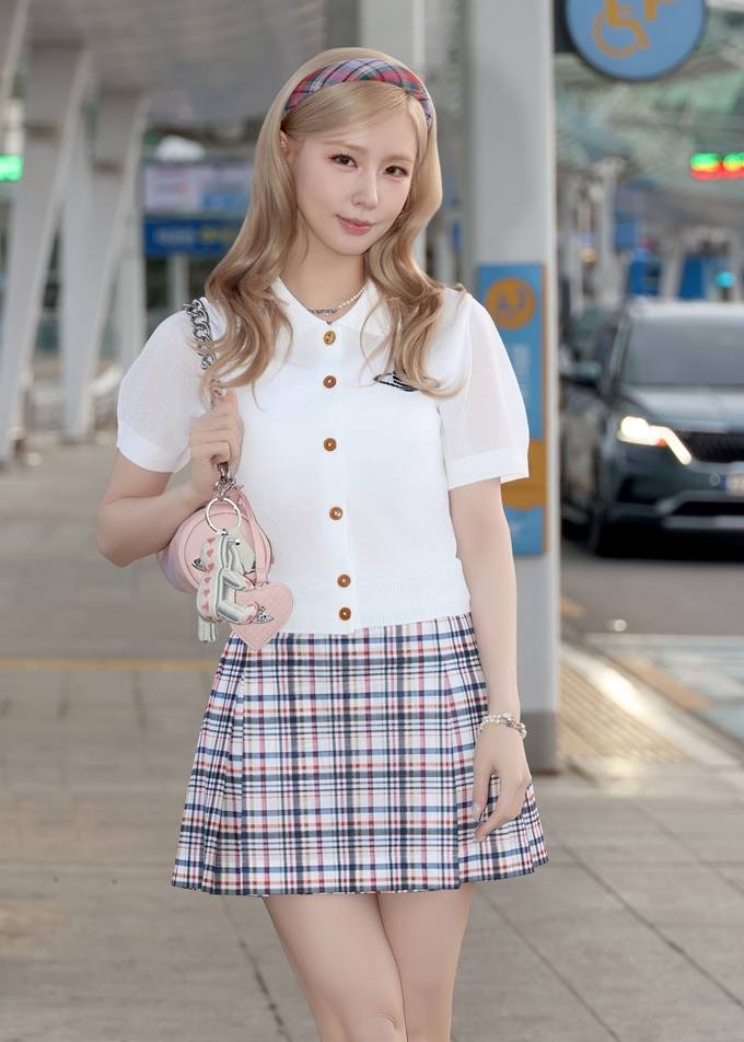 그룹 아이들(i-dle) 미연이 걸리시한 스쿨룩으로 공항을 사로잡았다.