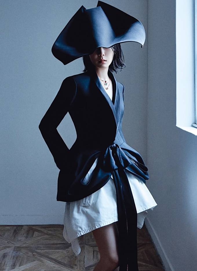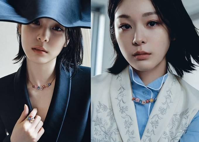 공개한 화보에서 김연아는 긴 머리를 싹둑 자른 숏컷 헤어 스타일에 단아하면서도 트렌디한 투피스 슈트와 슬림하게 핏된 블랙 페블럼 재킷, 블루 셔츠와 베스트 재킷, 체크 리본 타이 셔츠 등을 착용한 럭셔리한 슈트룩으로 단아하면서도 시크한 품격을 드러냈다.