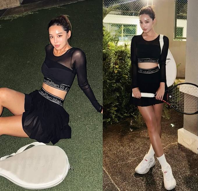 김희정, 테니스룩이 너무 섹시! 은은한 시스루 블랙 톱 테니스 애슬레저룩