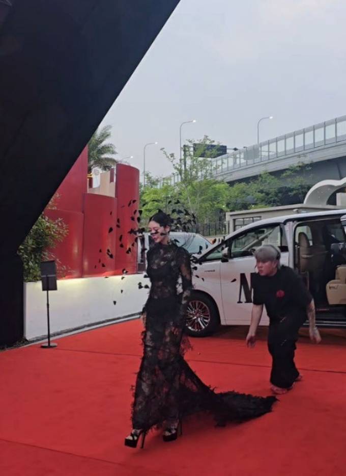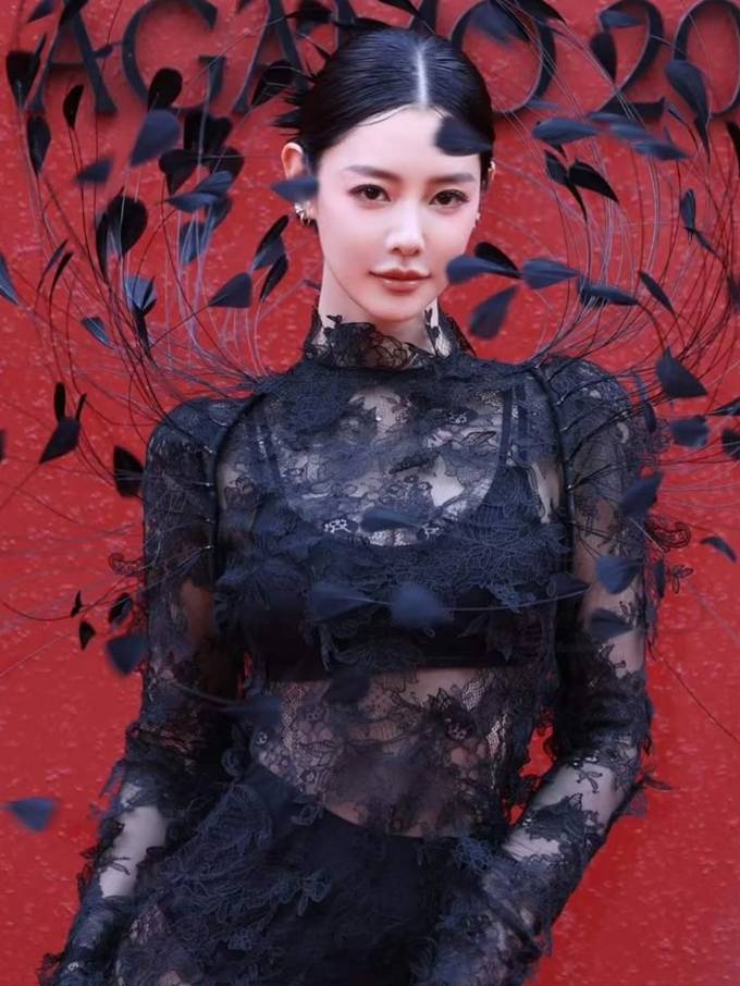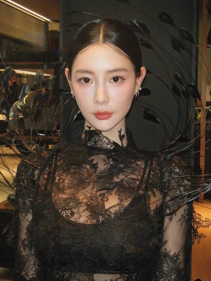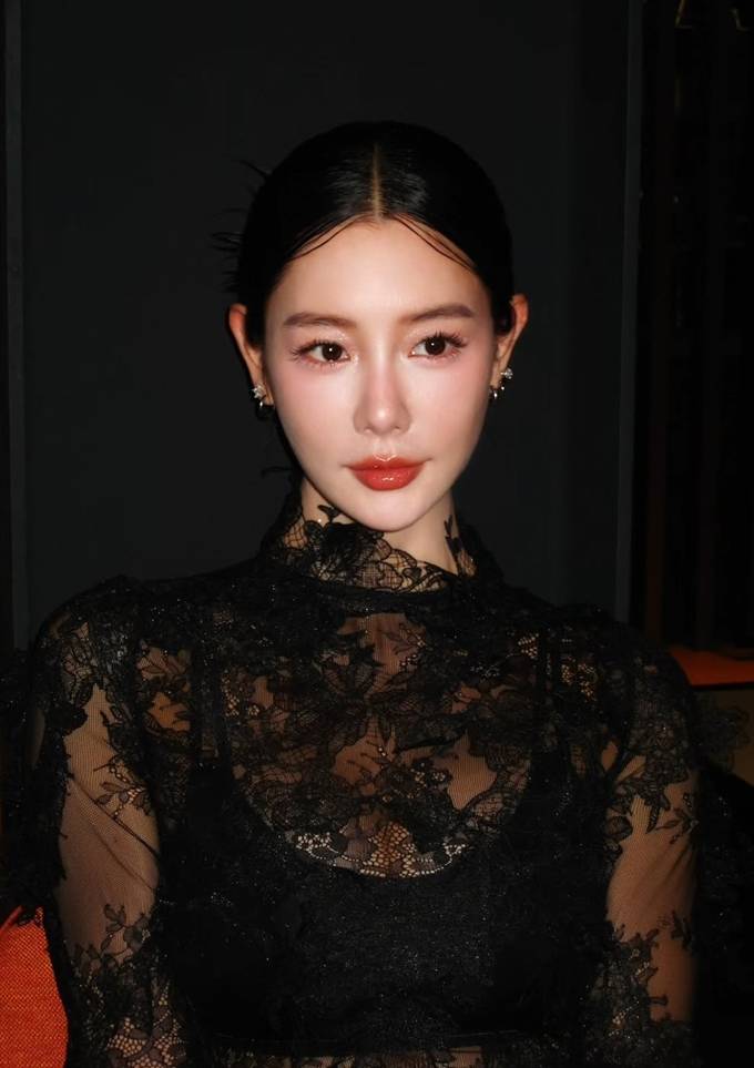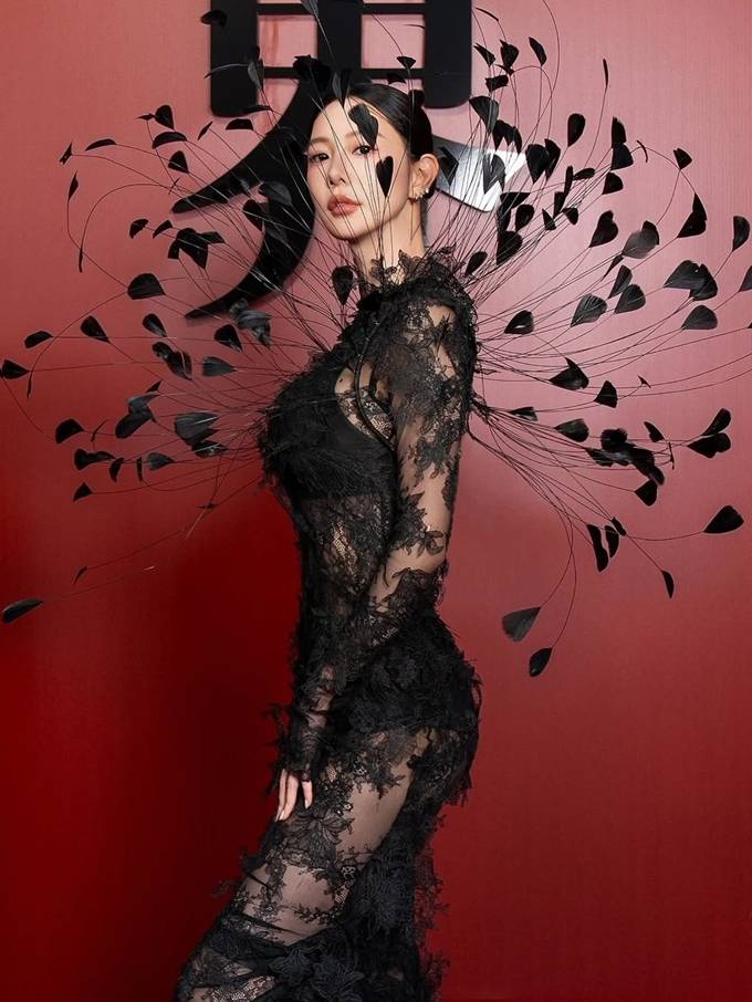 섬세하게 수놓인 레이스 패턴과 바디 라인을 따라 흐르는 실루엣이 만나 압도적인 분위기를 자아냈고, 목선을 감싸는 하이넥 디테일은 클래식한 품격을 더했다.