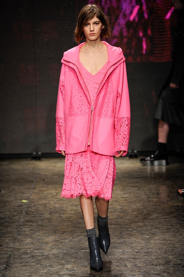 이제 핑크는 봄/여름 시즌을 위한 전유물이 아니다. 올 가을을 위한 디자이너들의 핑크 사랑은 예년과 비교할 수 없을 정도로 뜨거웠다. 알렉산더 왕의 뜨거운 자홍색에서 부터 모니크 루엘라의 앞뒤 기장이 다른 멀릿 드레스안의 밝은 핑크 줄무늬 안감, 오프닝 세라머니의 연어 핑크 코트, 활기찬 핑크가 돋보인 타쿤의 스웨터와 프린트가 대표적이었다. 핑크의 언니뻘인 레드 또한 패션쇼 무대에서 자주 볼 수 있었다.
