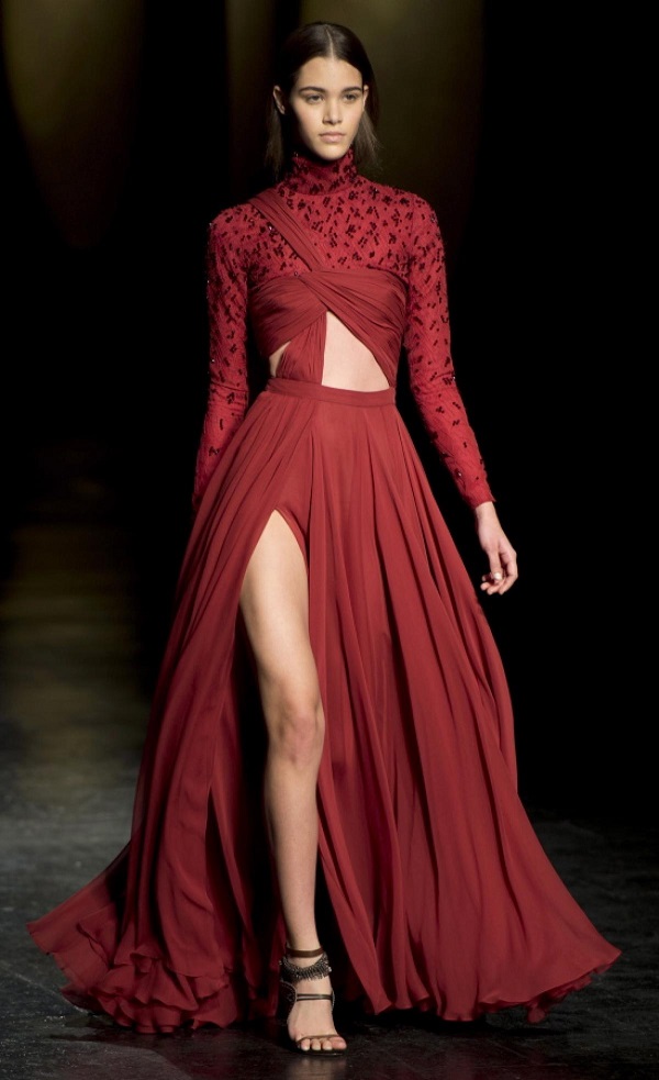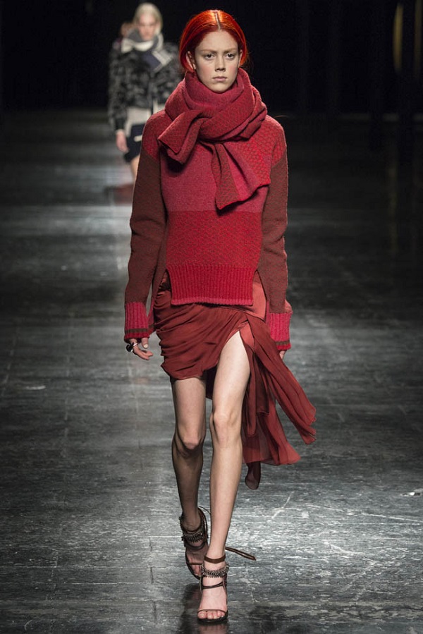 이번 시즌 가장 많은 주목을 받은 모델인 바로 나탈리 웨슬링일 것이다. 나탈리의 보틀 레드 헤어는 군중들 속에서도 그녀는 쉽게 찾을 수 있을 정도였고 그녀의 레드 헤어는 올 시즌 트렌드인 미스 스칼렛을 상징적으로 보여주는 절묘한 캐스팅이이었다. 특히 프로발 그룽 패션쇼에서 나탈리 웨슬링이 입은 밝은 진홍색 톤으로 깔맞춤한 큰 매듭의 스카프와 매치된 밝은 진홍색 니트 스웨터와 사롱 스타일의 시어 스커트는 완벽한 루즈 앙상블을 완성했다. 이오에도 오스카 드라 렌타의 딥 블러드 레드 벨벳 프록 스커트 위에 입은 레드 코트와 코스텔로 타글리아피에트라의 극단적인 우아미를 과시한 트논 시프트 레드 드레스, 그리고 도나 카란 패션쇼에서 카일리 코로스가 입고 나와 주목을 받은 와이드하게 하늘거리는 소매 부분이 특징인 시어 레드 드레스가 주목을 받았다. 레드 컬러를 유난히 좋아하는 이상봉 디자이너 역시 예외는 아니었다.