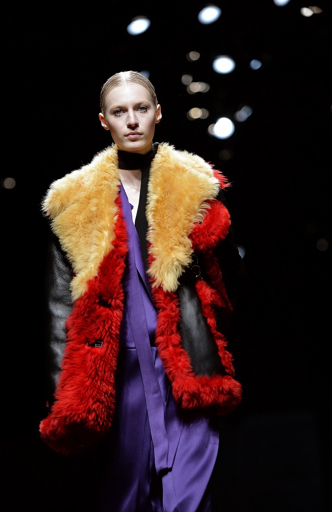 패션쇼에 등장한 드레스와 코트 세퍼레이트들은 서로 다른 컬러의 퍼로 라인에 생기를 불어 넣었고 발목 길이의 흐르는 듯한 스커트와 힙에 포켓이 달린 구조적인 울 재킷도 돋보였다. 쇼 후반부는 오렌지와 그레이, 퍼플 카무플라즈 패턴을 이용한 컬러 블로킹 시리즈가 선보였다. 드레스와 코트, 세퍼레이트로 선보인 의상들은 마치 오렌지와 브라운, 그린이 블랙& 화이트와 조화를 이룬 가운데 서로 다른 컬러 조합의 페인트를 뿌린 것처럼 보였다.
