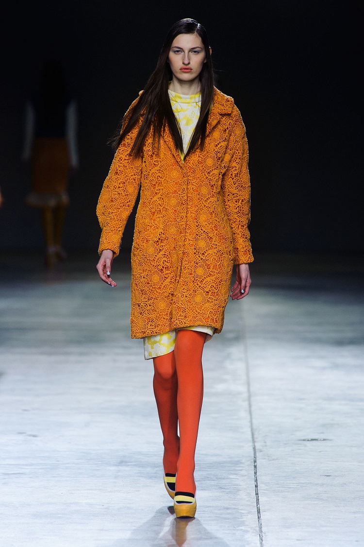 감귤 브라이트 부터 더욱더 부드러워진 메리골드 색상에 이르기까지 디자이너들은 슈즈 혹은 타이즈와의 매칭과 레이어드를 통해 너무도 다양한 컬러블로킹을 선보여 과부하라는 말이 나올 정도였다. 오렌지 코트가 새로운 핑크 코트로 등극할 수 있을지는 시간이 말해 줄 것이다. 시즌리스 트렌드 덕분에 봄/여름 시즌 못지않은 화려한 컬러가 주도하는 올 가을/겨울 시즌의 트렌드를 감안할 때 한번쯤 도전해 볼만 하다.