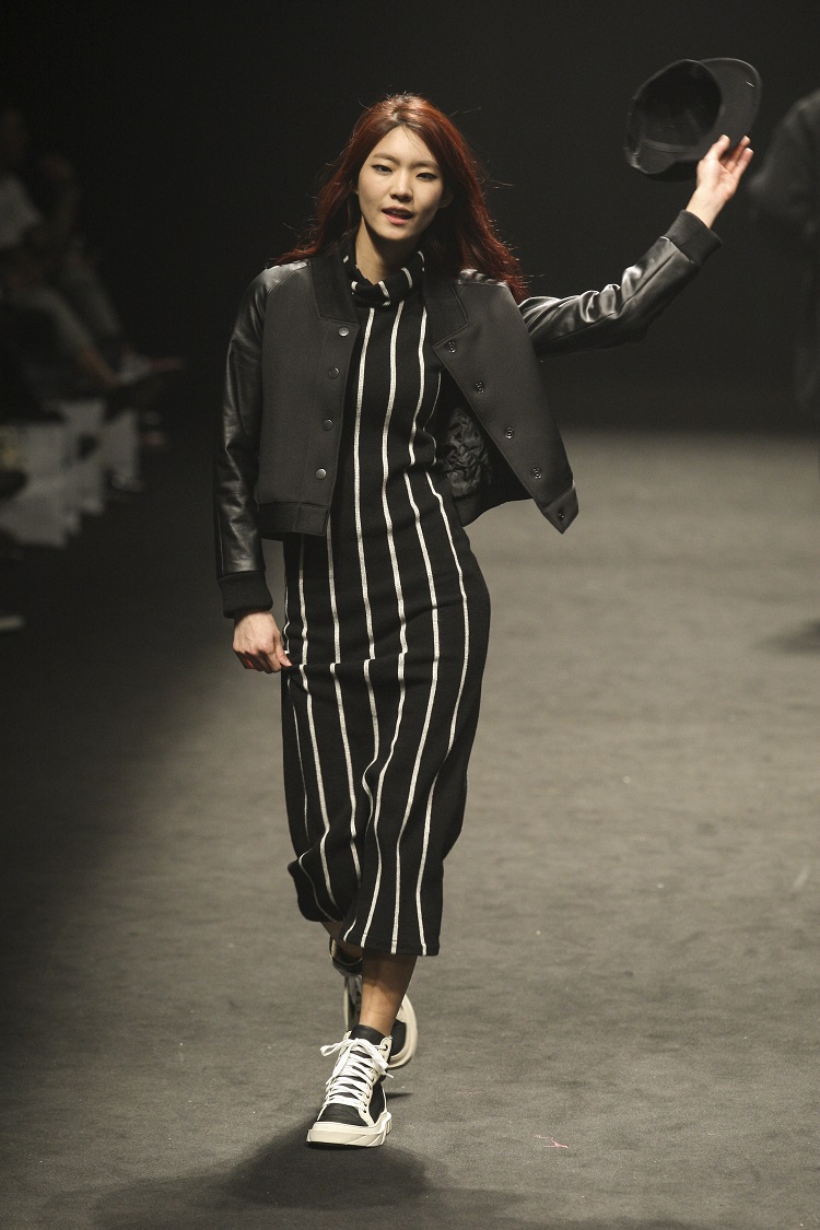 매시즌 로커를 닮은 펑키한 스타일을 선보이며 분명한 자기 색깔을 가진 디자이너 이주영. 그녀는 이번 시즌 여성의 코르셋과 란제리의 디테일에서 영감을 받아 오버사이즈의 재킷과 피트된 허리 라인을 이용해 의상을 디자인했다. 가죽, 울, 퍼 같은 소재를 이용해 다양한 스타일링을 하였고, 컬러는 시그니처인 블랙 외에 다크그린, 블루, 그레이가 주로 사용되었다. 밀리터리적 느낌을 가미한 전사들의 무대인 남성복 외에도 여성의 코르셋과 란제리의 디테일에서 영감을 받은 섹시한 여성복도 눈길을 끌었다. 모델 모두가 선글라스를 쓰고 임팩트 있게 피날레를 장식해 많은 이들의 박수를 받았다.