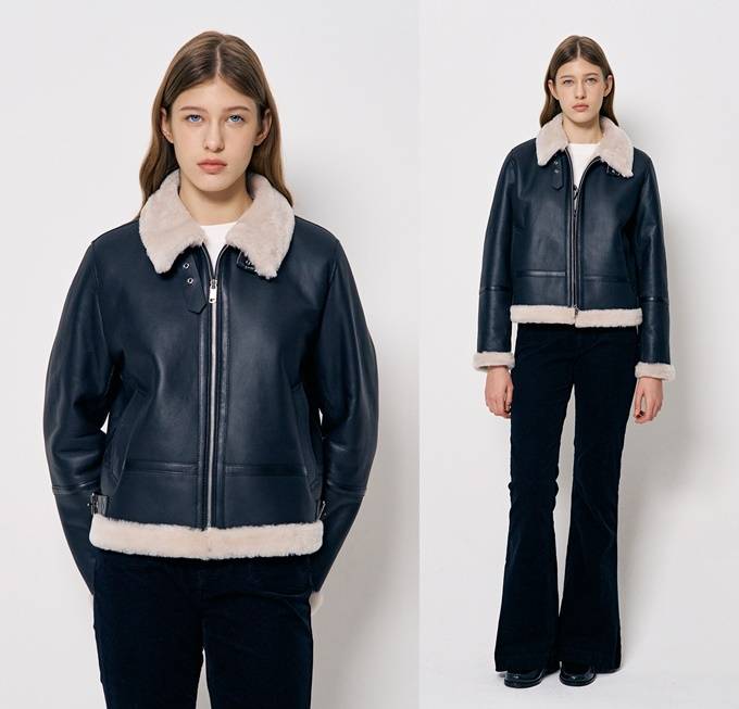 프렌치 컨템포러리 브랜드 '베르니스(BERENICE)' 무스탕 재킷은 베이직한 디자인에 고급스러운 천연 양가죽 소재를 사용해 보온성과 실용성을 높인 제품이다.